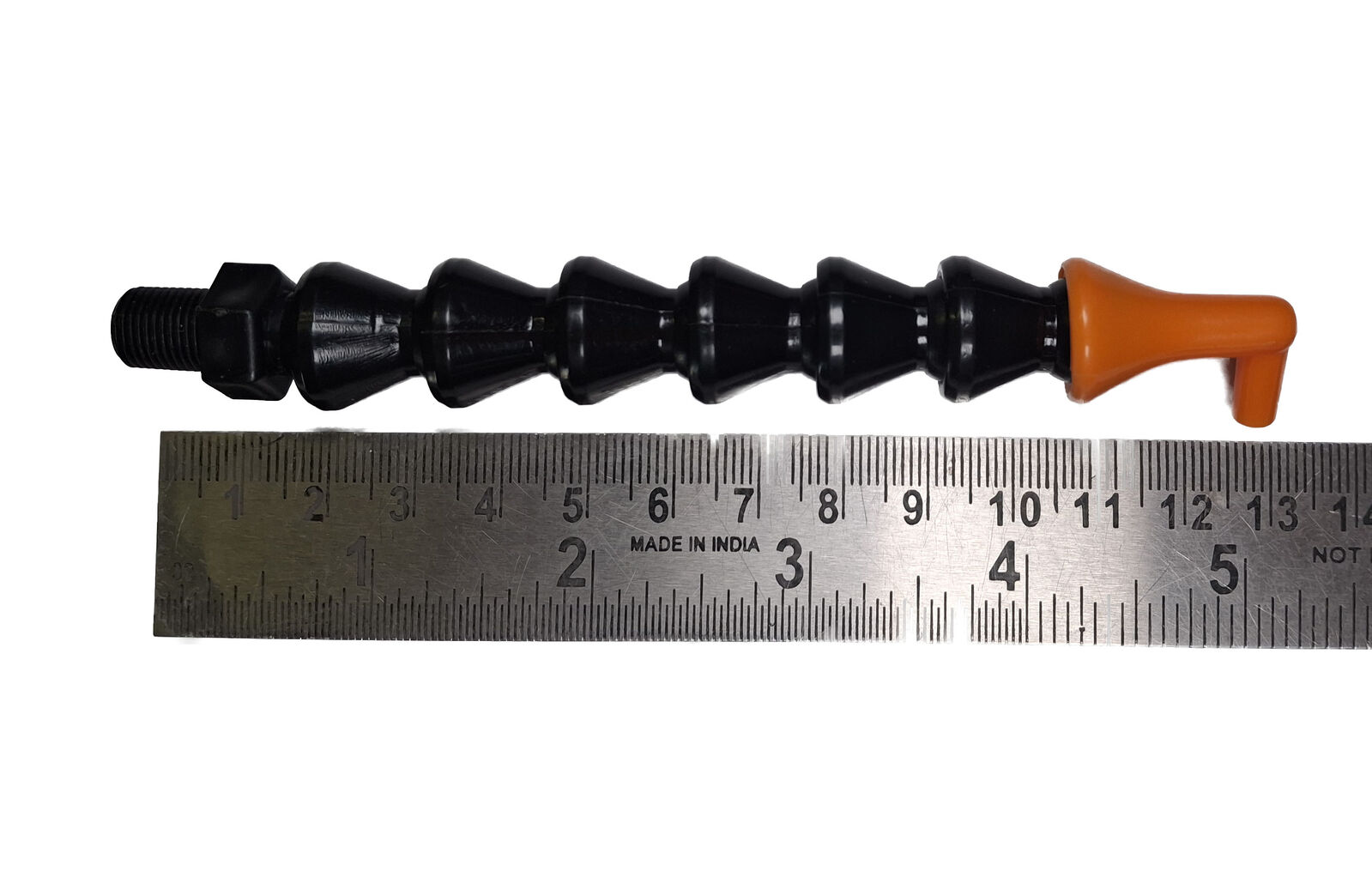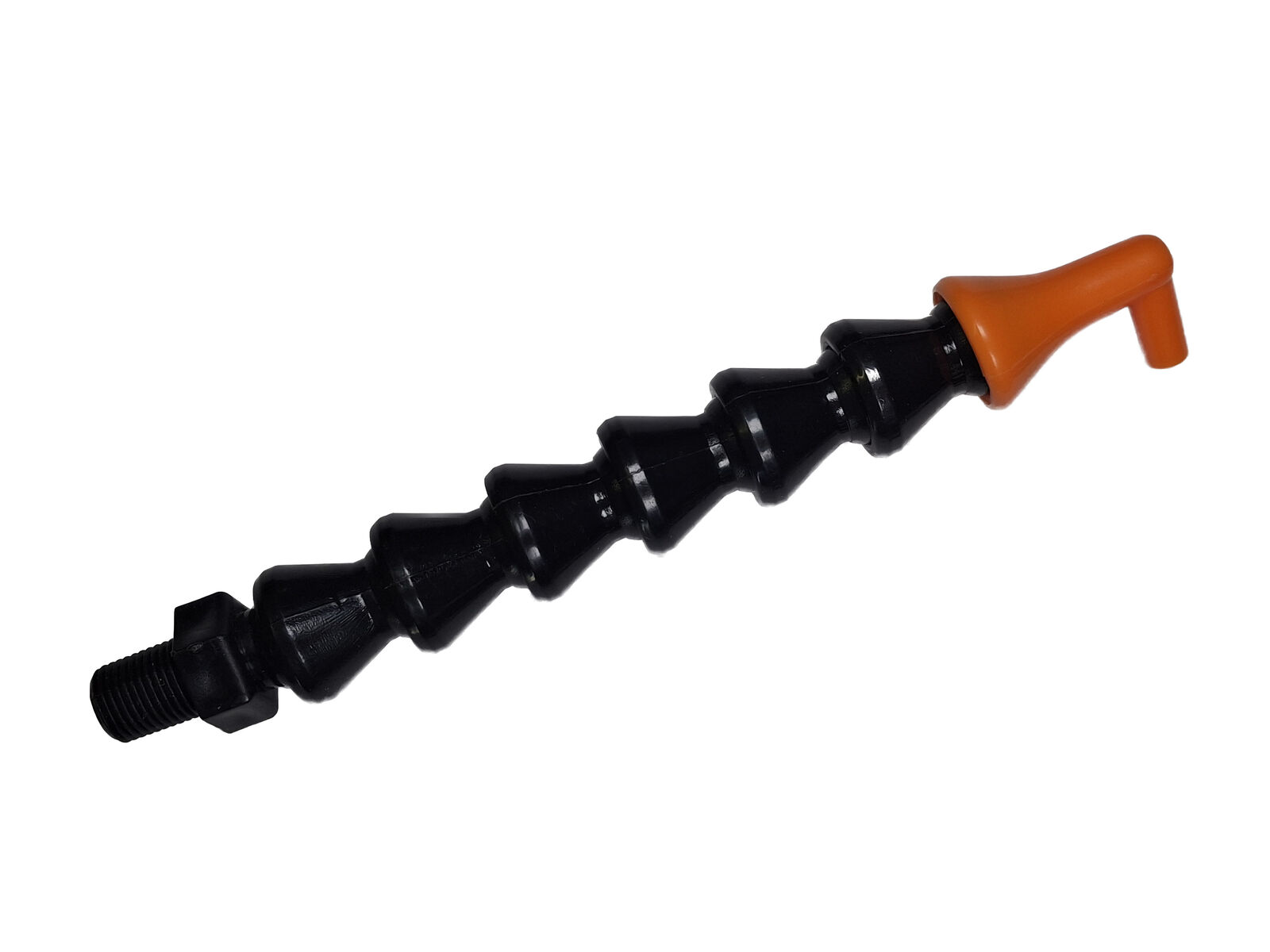 Black segmented hose with a 90 Degree spout.