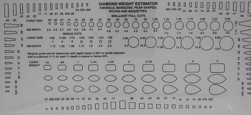 A handy tool for estimating the weight of diamonds and other gems of the same specific gravity.