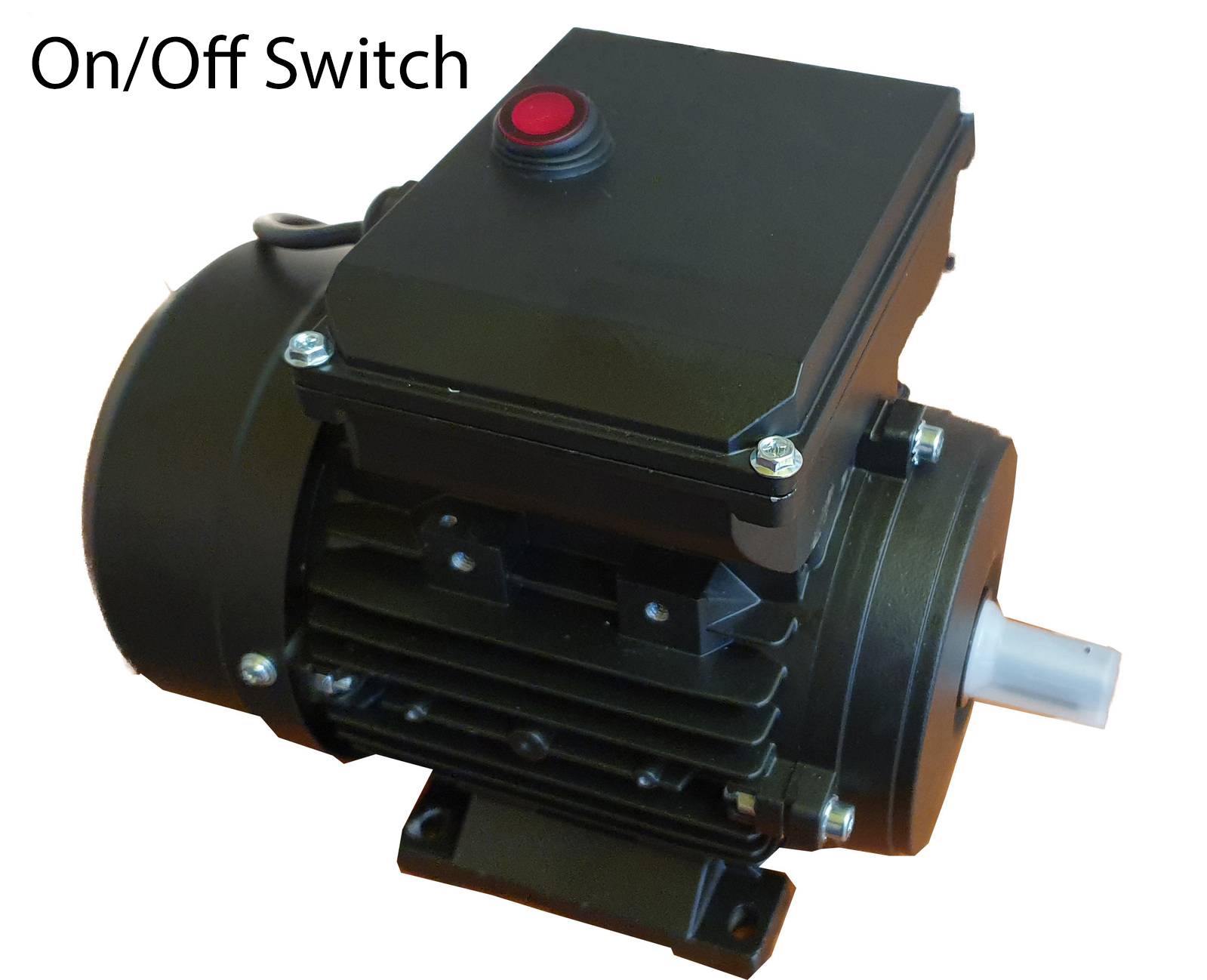 Includes a power switch that glows when switched on. The switch is located on top of the capacitor housing and is easily accessible. The switch is IP65 water resistant and is suitable for use on all machines that we manufacture and sell.