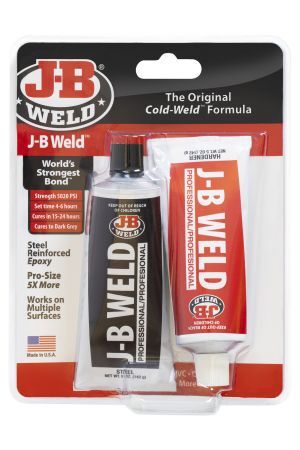 J-B Weld™ is The Original Cold Weld two-part epoxy system that provides strong, lasting repairs to metal and multiple surfaces. Mixed at a ratio of 1:1, it forms a permanent bond and can be shaped, tapped, filed, sanded and drilled after curing. At room temperature, J-B Weld™ sets in 4-6 hours to a dark grey colour. A full cure is reached in 15-24 hours. J-B Weld™ has a tensile strength of 5020 PSI and sets to a hard bond overnight. It can withstand temperatures up to 550ºF when fully cured.