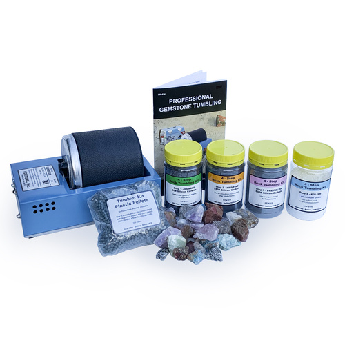 The kit also includes 4 Step Tumbling Media, Plastic Pellets and Rough Stone to start with.