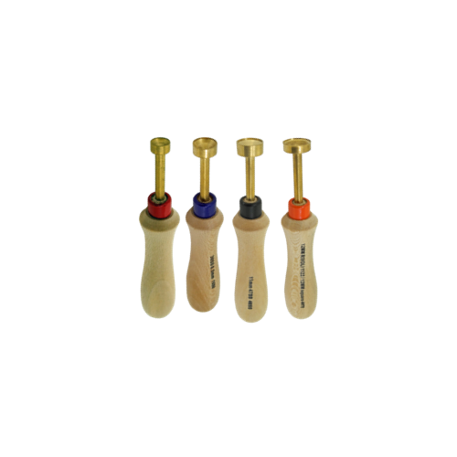 An easy-to-use device to set stones into a prong setting. Simply select the appropriate size tool for the stone you are using, place your stone in the cup, then press straight down. The sizes are printed on the handle for easy reference and the curved wooden handles sit comfortably in your hand.